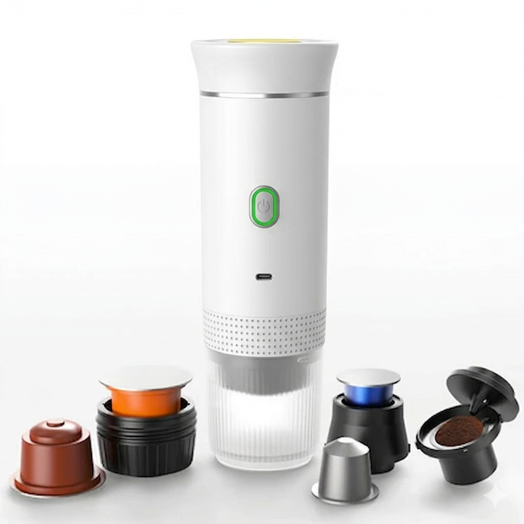 Diese Kaffeemaschine wurde entwickelt, um Sie überallhin zu begleiten, und vereint Kompaktheit mit Flexibilität. Dank ihres handlichen Formats passt sie problemlos in jede Tasche oder ins Auto, sodass Sie jederzeit einen guten Kaffee genießen können.